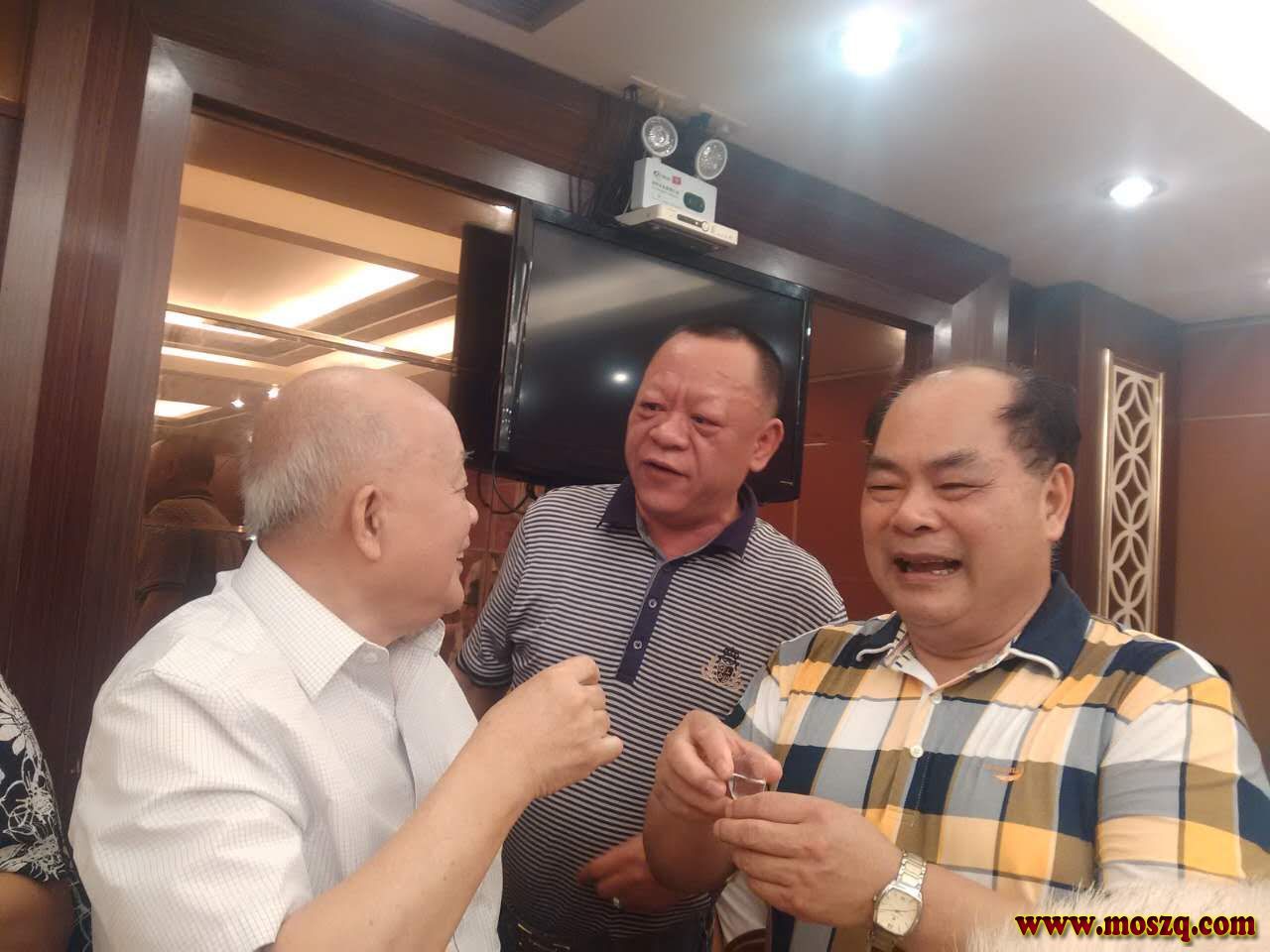 六时3O分到达江门,参加席设新港城鱼翅海鲜酒家莫氏联谊会的晚宴。莫江华会长,莫镇明理事已在电梯口迎接我们,亲自把我们送到座位,随后莫文耀会长,莫国泰会长来握手问候。开席时,国泰会长第一个句话:欢迎广卅耒的宗亲。举着酒杯再次耒到老教授身边说悄悄话,你每个月的25号都来呢度食饭,只要阿姐打电话,要食鱼翅,要订座新港城,一定照办!逗得老教授乐呵呵!气氛活跃祥和,几个会长,举着酒杯到每一席敬酒,齐齐高唱莫家兴旺,齐心协力!有这样的好会长带领,莫家一定兴旺!